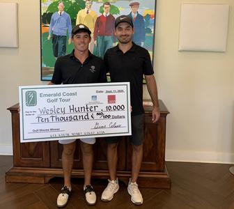 Wesley Hunter got his second win of the year at Kiva Dunes in our Fall Classic. His rounds of 65-64-68-197 broke the Emerald Coast Tour scoring record at Kiva Dunes. It was previously held by Michael Johnson. He got $10,000 for the win. Alex Herrmann who is from Germany finished second at 202. Drew Mathers who was the first round leader finished third at 202. Hayden Carner who won at Timberline earlier in the year was fourth at 205. Hogan Ingram was 5th 209. Jake Springer who is from Tallahassee FL finished 6th at 210. Will McFadden of Mobile Al fished 7th at 211. Max Herrmann of Germany was 8th at 212.